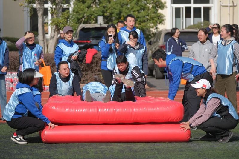 赛场上,个人项目精彩纷呈,“精准投掷”比拼专注,“指压板跳绳”挑战极限,“旱地钓鱼”尽显技巧,欢声笑语此起彼伏。真正的较量在集体项目中进入白热化。6支参赛队伍的教职工个个摩拳擦掌、全力以赴,为了集体荣誉团结协作、勇争第一。在“车轮滚滚”与“拼图达人”环节,队员们默契配合,既比拼速度技巧,更考验战术执行。每一次精准的传递与拼接,不仅是智慧的博弈,更是团队凝聚力的生动写照。