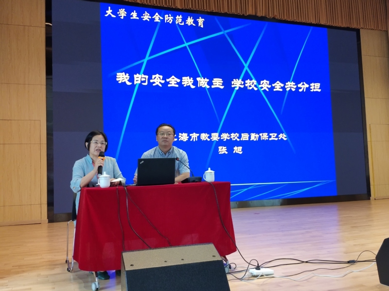 张旭处长此次为新生带来了《我的安全我做主,学校安全共分担》为主题的安全教育讲座。张处长结合多年工作案例,从自我保护、安全防范、安全演练,防火、防盗、防交通事故等多方面引导学生重视生命安全,防止各类诈骗。当一张张照片,一组组数据,张处长把上海安全事故情况的现状展现在同学们面前时,同学们神色凝重,一片扼腕长叹、唏嘘不已。整个讲座生动活泼的言语,鲜明贴地气的案例,不仅博得在座同学们的阵阵掌声,更是引起了同学们深深的共鸣。最后,张处长勉励同学们要“积极参加各种教育活动,努力争当校园安全卫士。”