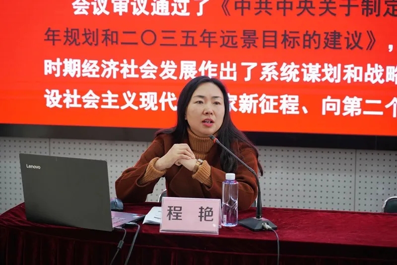 程艳主任重点从“十四五”期间准确把握和理解“新阶段与新目标、新理念与新部署、新变化与新格局”三个方面,用了大量生动的案例和翔实的数据,就党的十九届五中全会精神做了专题辅导讲座。师生们纷纷表示,宣讲报告内涵丰富、讲解透彻,联系实际、回应关切,很及时、很解渴,能帮助我们全面、深入、系统、准确地理解把握全会精神。