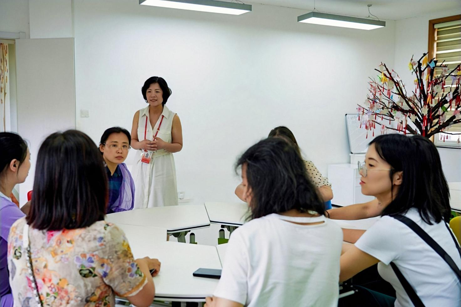 在实地参观环节,学员们参观了我校现代护理开放实训中心、口腔实训中心、心理健康教育中心。护理系徐晶心、张丽华、邹丽萍老师,口腔药学系杨海燕老师向学员们介绍了实训中心的功能布局、设施设备以及仿真模型等,使大家体会到多媒体教学、数字化模拟实验在实验教学中的优势。心理健康教育中心高虹老师简要介绍了心理健康教育中心的建设,并让学员切身体验了设备的应用。此外,为更好地了解目前中国养老产业面临的发展机遇,学员们来到位于浦江镇的星堡养老社区,近距离感受“高端养老品质生活模式”。