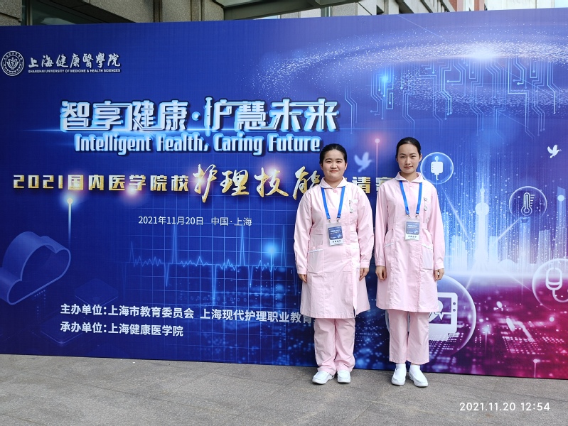 11月20日,2021国内医学院校护理技能邀请赛如期举行,我校19护理中高2班的胡敏慧和20级护理中高1班的胡敏两位同学代表学校参赛,勇夺学校组三等奖及个人单项奖。