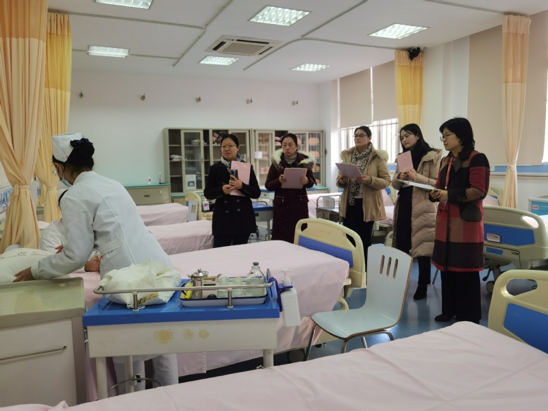 会上,教师们对中本贯通基础护理课程的教学内容做了介绍和说明,与医学院的老师们在教学内容、教学方法等细节上进行梳理与备课,统一教学标准。张丽华老师安排19级中本贯通1班四位学生分别进行了铺备用床、无菌技术、血压测量、口腔护理四项操作的演示,医学院老师对操作演示给予充分肯定,老师们就评分细则、计时要求等进行了讨论和统一,进一步优化评价标准,达到评价的一致性。