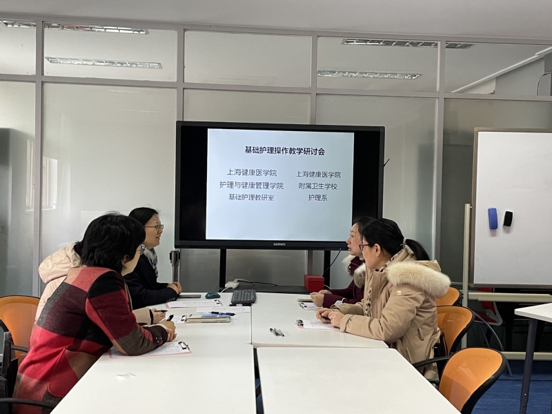 为进一步提升护理专业教学水平,对标高校要求,做好同质化教学,2022年1月7日上午,护理系在16号楼201会议室进行基础护理操作教学研讨会,邀请上海健康医学院护理与健康管理学院基础护理教研室蔡妤珂、董静静两位老师进行指导交流,护理系张丽华、李珺、高川三位教师参加。